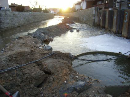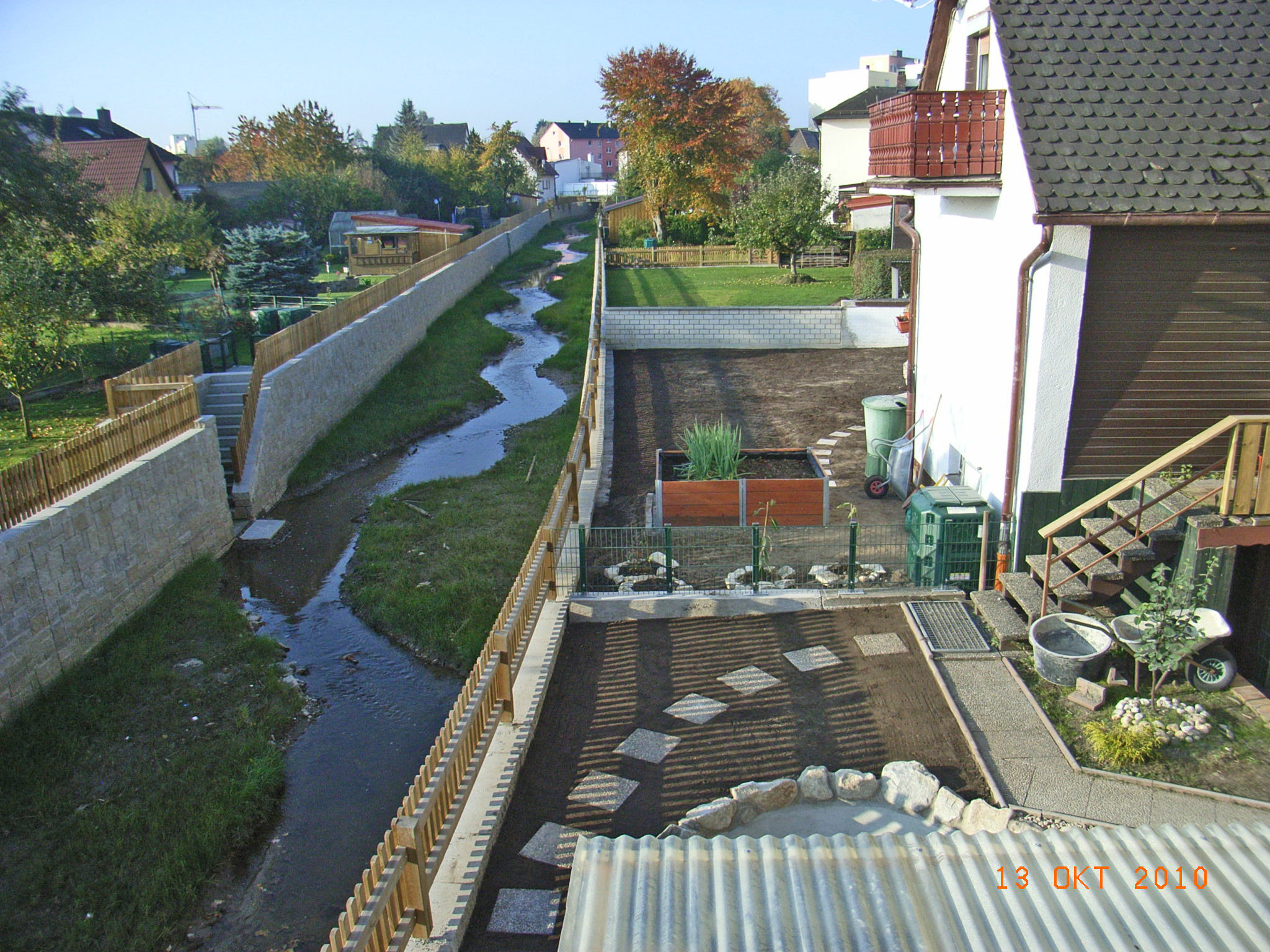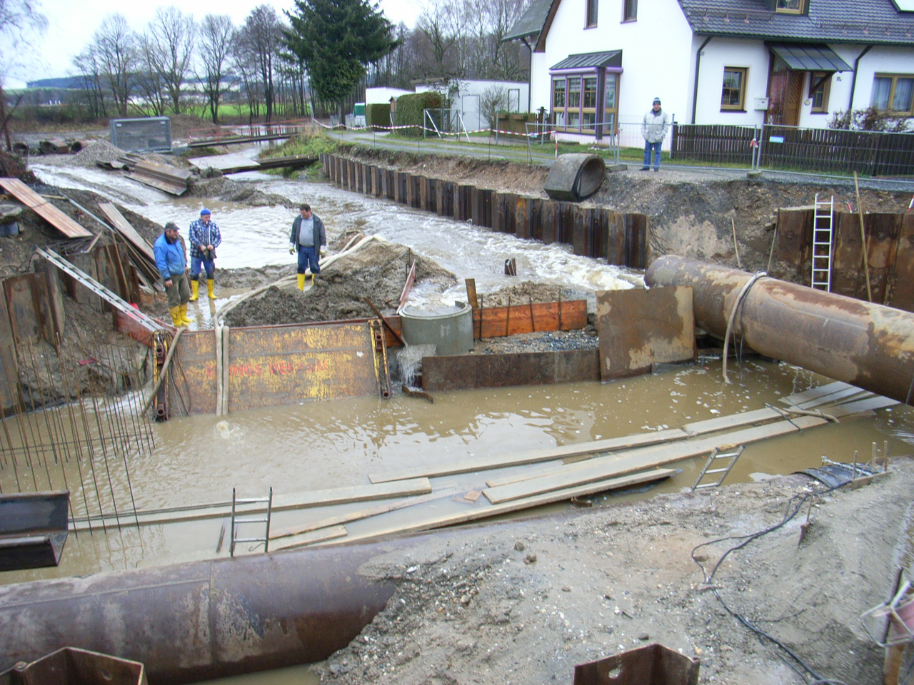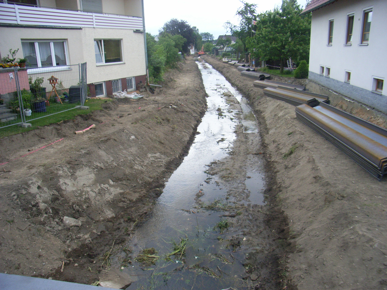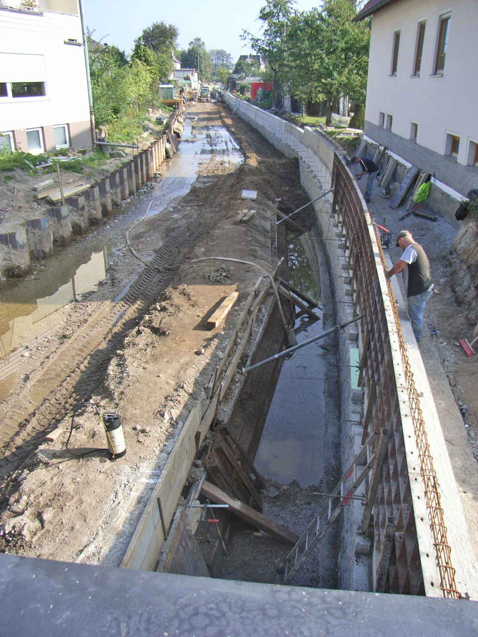 Je nach den vorhandenen Platzverhältnissen erfolgt eine Aufweitung durch das Zurücksetzen der Böschung oder durch den Bau einer Ufermauer sowie durch Absenken der Sohle.