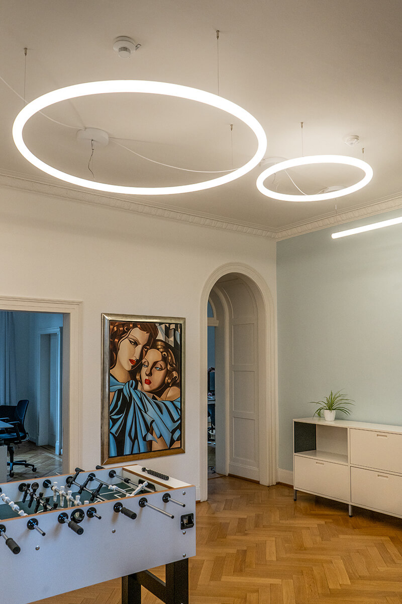 Ziel war es, ehemalige Wohnräume in moderne, hochwertige Büroflächen für die IT-Branche zu transformieren. So entstand ein Projekt, das Sensibilität für den Bestand, architektonische Klarheit und innovative Raumlösungen miteinander vereint.