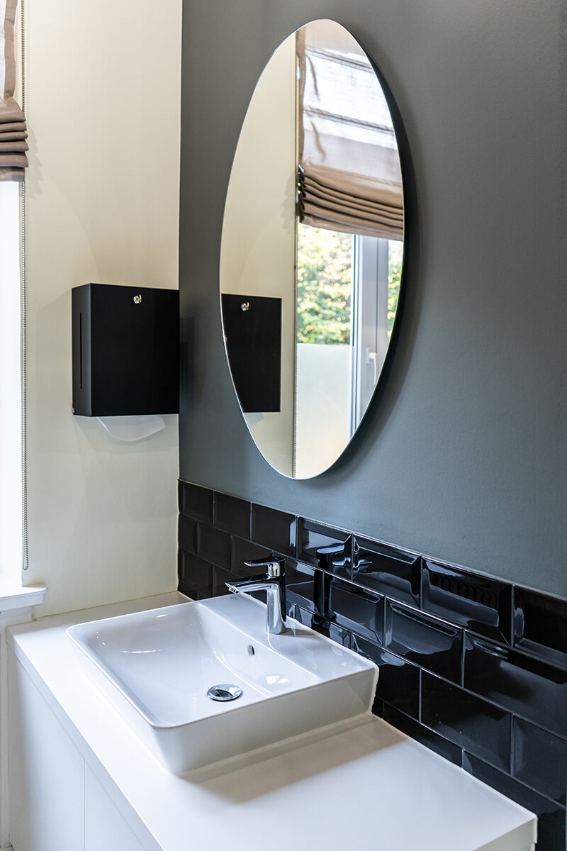 Die bestehende Raumstruktur im Hochparterre und Obergeschoss blieb bewusst erhalten – ein Zeichen für den respektvollen Umgang mit der historischen Bausubstanz. Eingriffe erfolgten präzise, abgestimmt auf den Denkmalschutz, und ergänzt um eine normgerechte brandschutztechnische Ertüchtigung.
